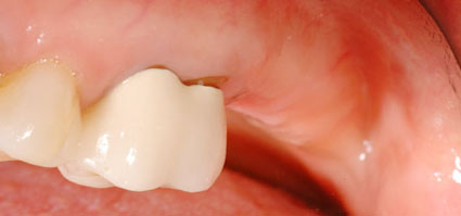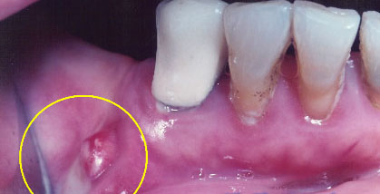 Hình: áp xe do phục hình răng sứ không tốt, gây viêm và nhiễm trùng tủy răng. Sẽ rất khó giữ lại được một chiếc răng bị nhiễm trùng nặng như vậy.