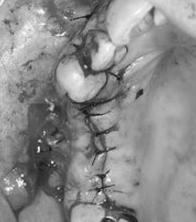 Hình: cùng cấy ghép 3 Implant, nhưng ở hình bên trái kỹ thuật rạch nướu và lật vạt sẽ gây ra nhiều chấn thương, và thời gian lành thương lâu hơn so với kỹ thuật “không lật vạt” ở hình bên phải.