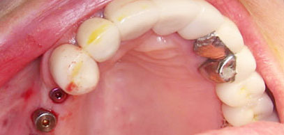 Hình: cấy ghép Implant trước và sau khi phẫu thuật. Vì khi mất răng, mạch máu và thần kinh tại nơi đó sẽ bị tiêu đi, nên việc cấy ghép Implant sẽ ít “nhạy cảm” và cũng ít chảy máu hơn so với khi nhổ răng.
