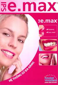 - E.max ceram là sứ đắp bên ngoài sườn Glass hay Zirconium Oxide, có thành phần là NanoFluorapatite, kết hợp một cách tối ưu nhiệt độ nướng với hệ số giãn nở nhiệt nên có thể được dùng cho cả hai loại sườn sứ Glass và Zirconium Oxide. Vì vậy chỉ cần một hệ thống sứ e.max, ta có thể thực hiện tất cả các chỉ định lâm sàng.